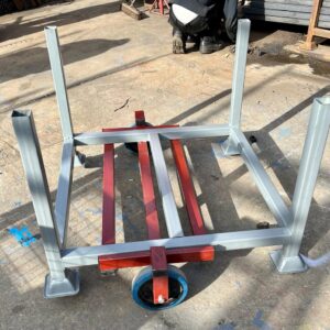 This steel Trolley is made from strict in house procedures, made out of 50 x 25mm box section (3ml thick steel) (weighs 11.5kg) and is capable of a load bearing of 1/2 tonne (500kg)